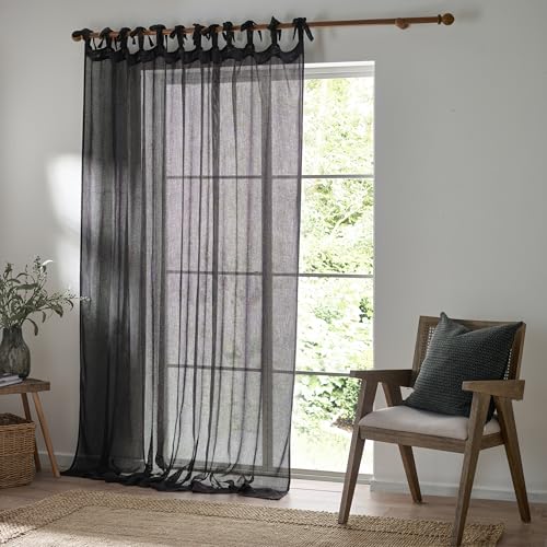 furn. Yard Nimbus Sheer Tie Top Curtain Panel - Black - 140x250cm