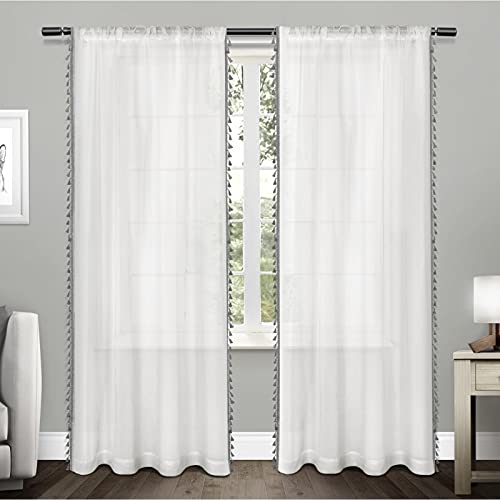 Exclusive Home Curtains Tassels Sheer Rod Pocket Top Panel Pair, Black Pearl, 54x84, 2 Piece