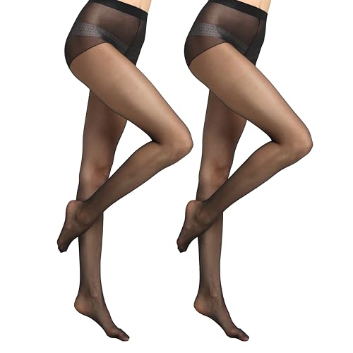 CozyWow 20 Denier Sheer Tights for Women,High Waist Control Top Silk Stockings,Comfortable Women's Pantyhose with Reinforced Toes Black-L