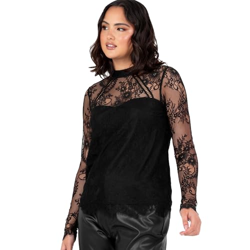 Lovedrobe Women's Lace Top Ladies' Blouse High Neck Long Sleeve Sheer Scalloped Smart-Casual Office Wear Occasion Party Going Out, Black 18