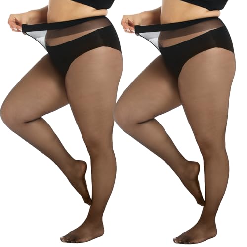 Yilanmy 2 Pairs Women's Plus Size Tights 20 Den Sheer Stretch Control Top Tights Soft Ultra Thin Pantyhose (Black,3XL-4XL)