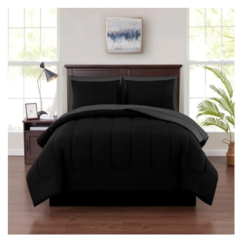 JQQJZLC Black 7 Piece Bed in a Bag Comforter Set with Sheets bedding set duvet cover set bed cover set,Pillowcase Sheet Set 4 Pieces(Full)