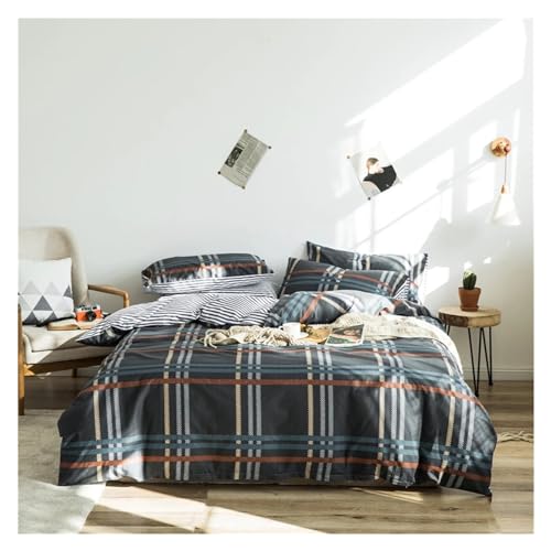 JQQJZLC Bed Four Pieces Set, Cotton Bedding Sets Twin Queen King Size Bed Duvet Cover Bed Sheets/Fitted Sheet Linen Set Black Plaid Bed Set(C,Full Size 4PCS)
