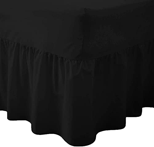EXTRA DEEP FITTED BED SHEETS NON IRON LUXURY PERCALE COTTON RICH VALANCE FITTED SHEET PLEATED BRUSHED COTTON BEDDING DOUBLE BED SET FLAT SHEET FRILLED (Single, Black)