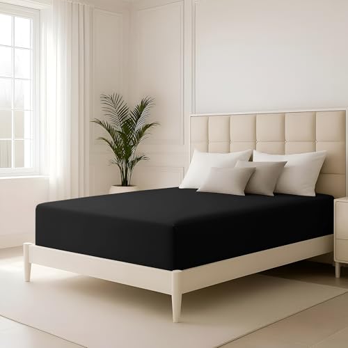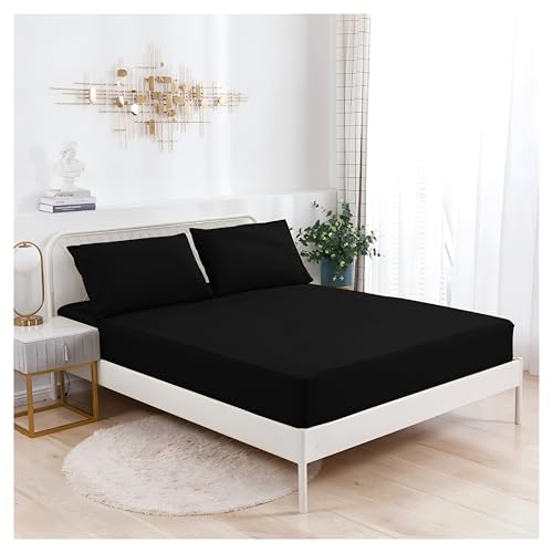 Family Bedding King Size Fitted Sheets Deep Fit | Fitted Bottom Sheet King Jersey Cotton | Deep Pocket Fitted Sheet King | Bedsheet For Kingsize Bed (King, Black)