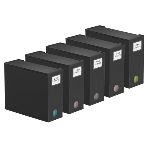 SpaceAid 5 Pack Bed Sheet Organizers and Storage, Foldable Sheet Organizer for Linen Closet, Sheets Set Folder Keeper with Window XL (Queen & King Size) Organizing Bedding Container, Black