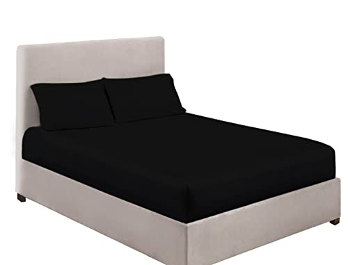 Moonlight Bedding King Size Fitted Sheets - 25cm Deep King Black Fitted Bed Sheets - Soft Brushed Fabric Shrinkage, Wrinkle free And Fade Resistant Easy Care Bed Sheet (152 x 200 Cm)