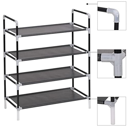 QJBSAVVA 4-Tier Black Shoe Rack 44x28x77 cm, Steel Frame Non-woven Shoe Storage Cabinet for Hallway, Living Room, Bedroom, Lightweight Organiser for Trainers, Boots, Bags