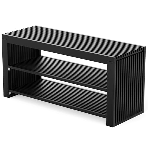 BAM BOO BOX Shoe Bench with Bamboo Seat Black - Narrow Shoe Rack with 2 Levels for 6 Pairs of Shoes - Space-Saving Shoe Cabinet for Hallway, Wardrobe & Entrance Area - Sturdy Shoe Rack