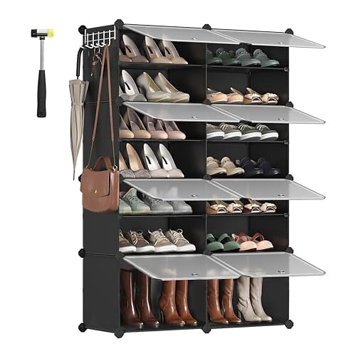 Songmics Shoe Rack 8 Compartments with Doors Black and Transparent LPC034B01