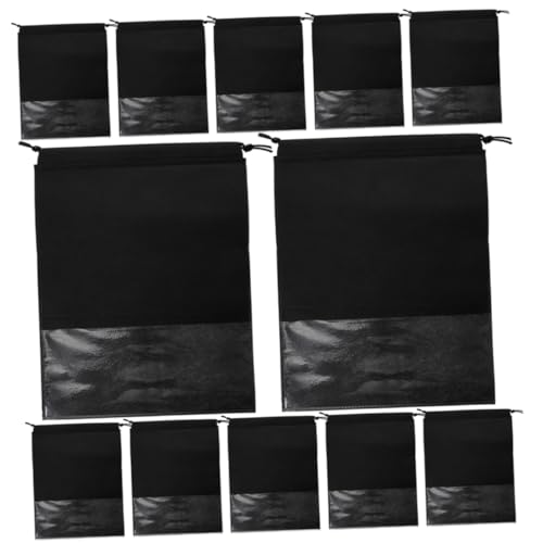 VALICLUD 12pcs Non-Woven Black Drawstring Bags Shoe Storage Pouches for Travel Packing Clothes Organizers