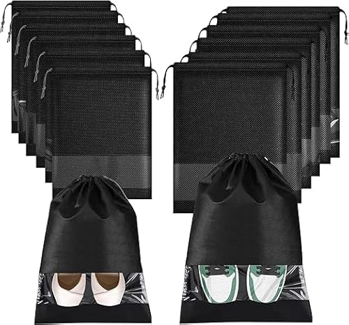 TINEASUR 12pcs Drawstring Bag Black Travel Shoe Storage Bags Portable Shoe Organizer