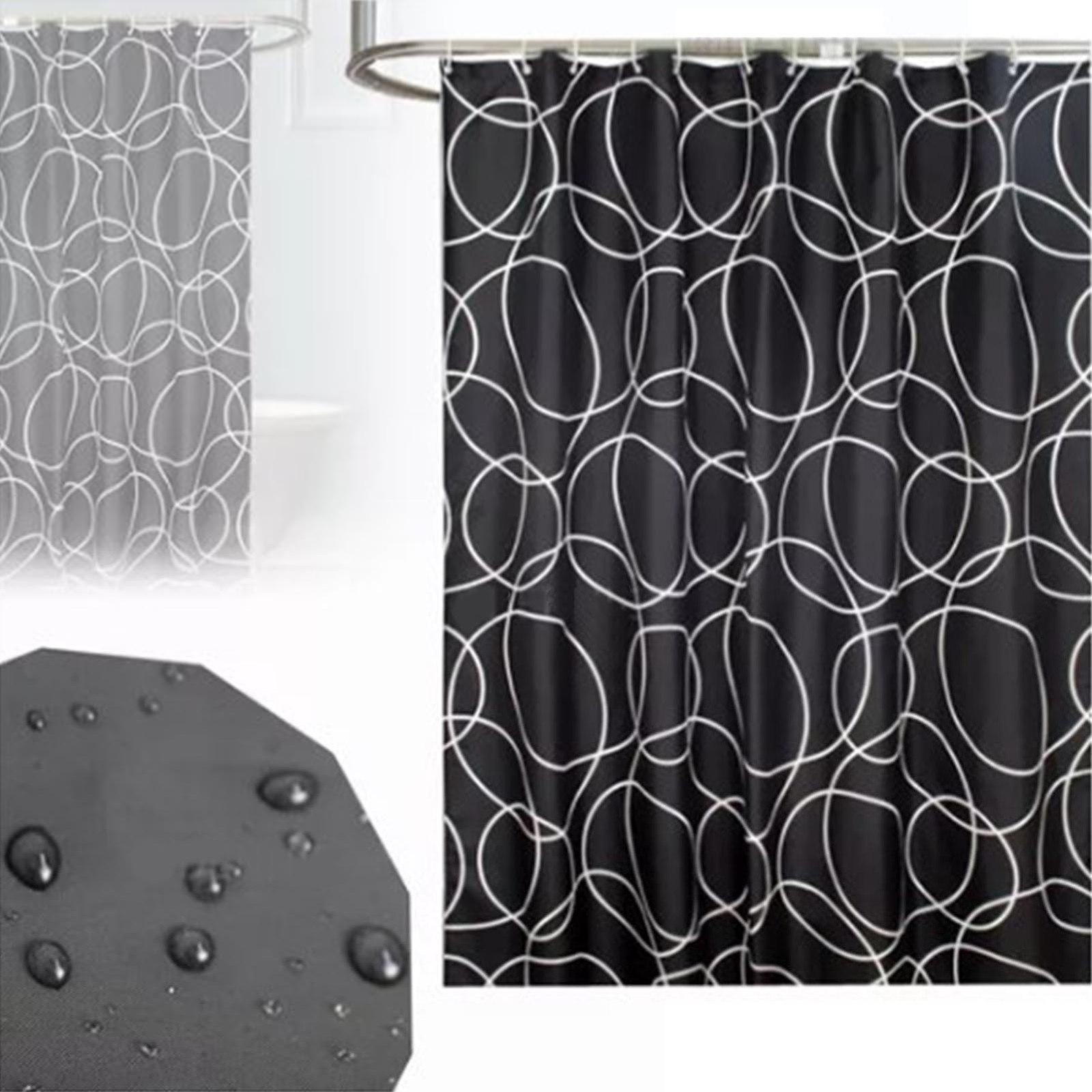 Thickened Black Siliver Circle Shower Curtain Waterproof Polyester Fabric Sh NEW