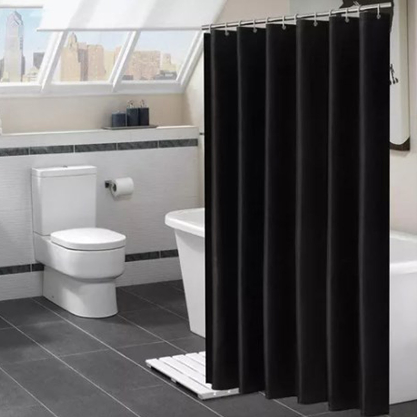200x200cm Pure Black Shower Curtain Thickened Waterproof Polyester Fabric S SG