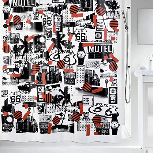 Spirella 10.19022 Roadtrip Fabric Shower Curtain, Black/Red Black/Red Textile Shower Curtain 180 x 200 cm