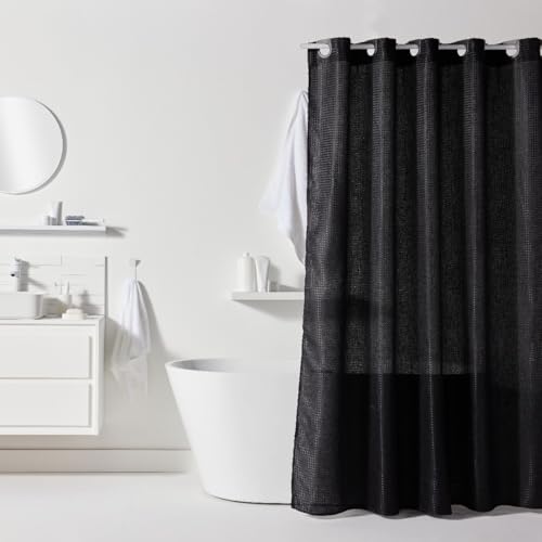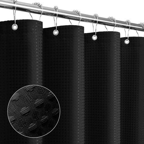 Gibelle Black Shower Curtain, Waffle Weave Textured Fabric Shower Curtain for Bathroom, Soft Cloth & Hotel Spa Luxury, Water Repellent, Machine Washable, 72X72