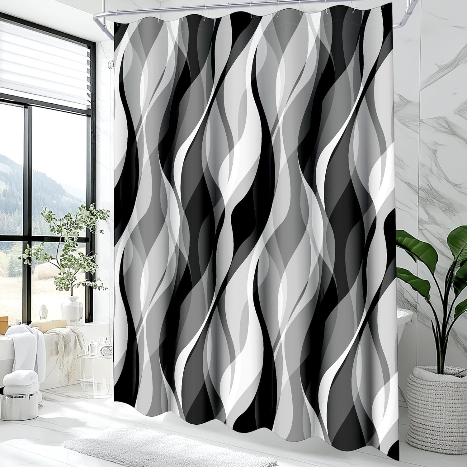 White and Grey Shower Curtain for Bathroom White and Black Shower Curtain Fabric