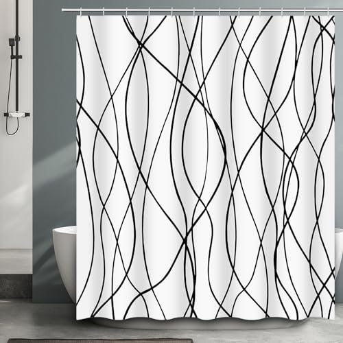 BSHAPPLUS Black Striped Shower Curtain, 71" L x 71" Polyester Shower Curtains for Bathroom with Hooks