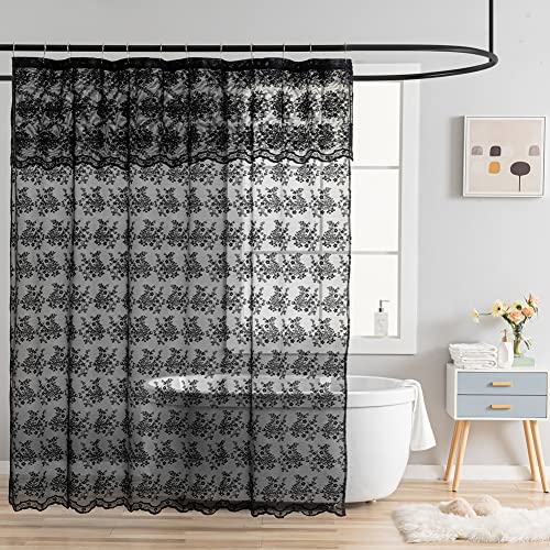 YJ YANJUN Black Lace Shower Curtain with Attached Valance - Luxury Vintage Sheer