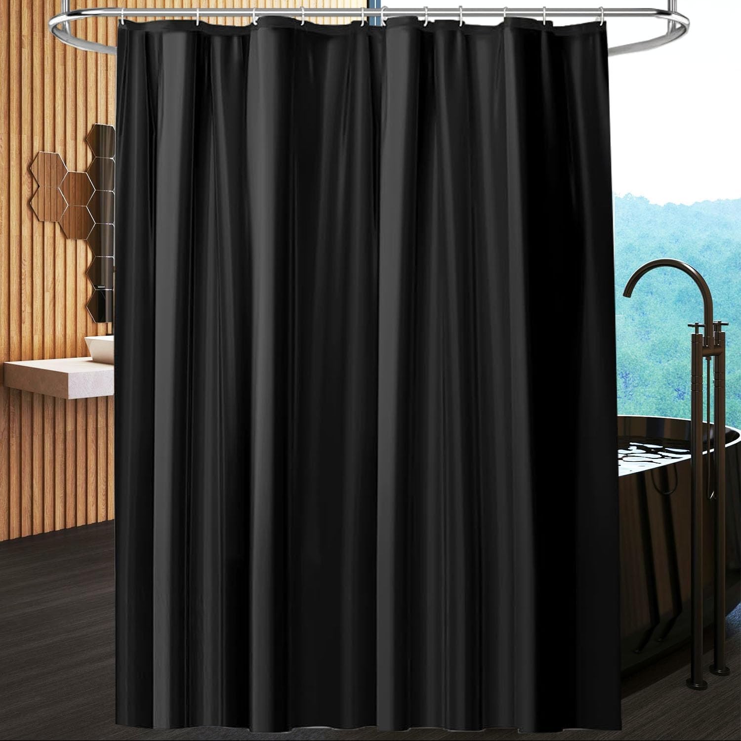 Black Shower Curtain, Mould Proof and Mildew Resistant Washable Bathroom Curtai