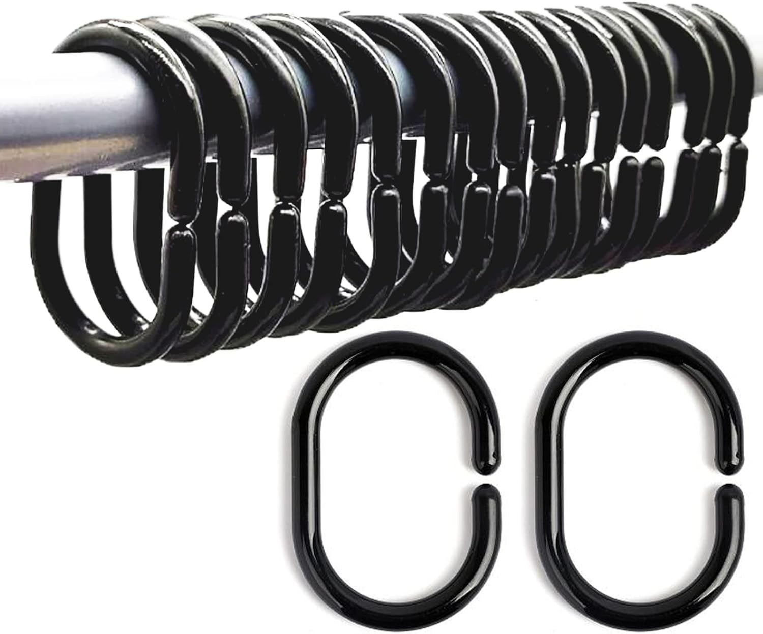 Black Shower Curtain Hooks, Rust Proof Decorative Shower Curtain Rings for Bathroom, Shower Curtain Hooks for Shower Liner, 12Pcs
