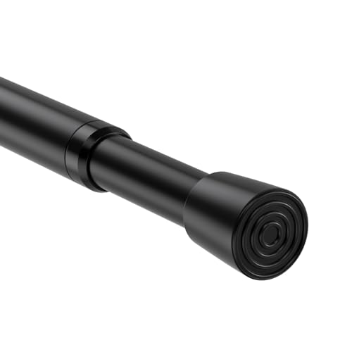 Black Tension Rod Shower Curtain Pole 68-100cm Spring Extendable Telescopic Rail No Drill for Net Curtains, Cupboards, Clothes