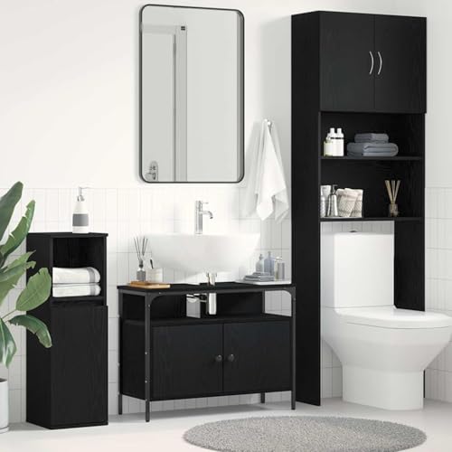 NiuBIKeLasI Black Bathroom Sink Cabinet, 60x35x60 cm Engineered Wood Vanity, Space-Saving Design for Modern Bathrooms, Ample Storage
