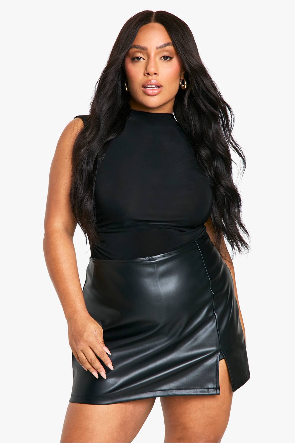 Womens Plus Pu Split Hem Skort - Black - 20, Black