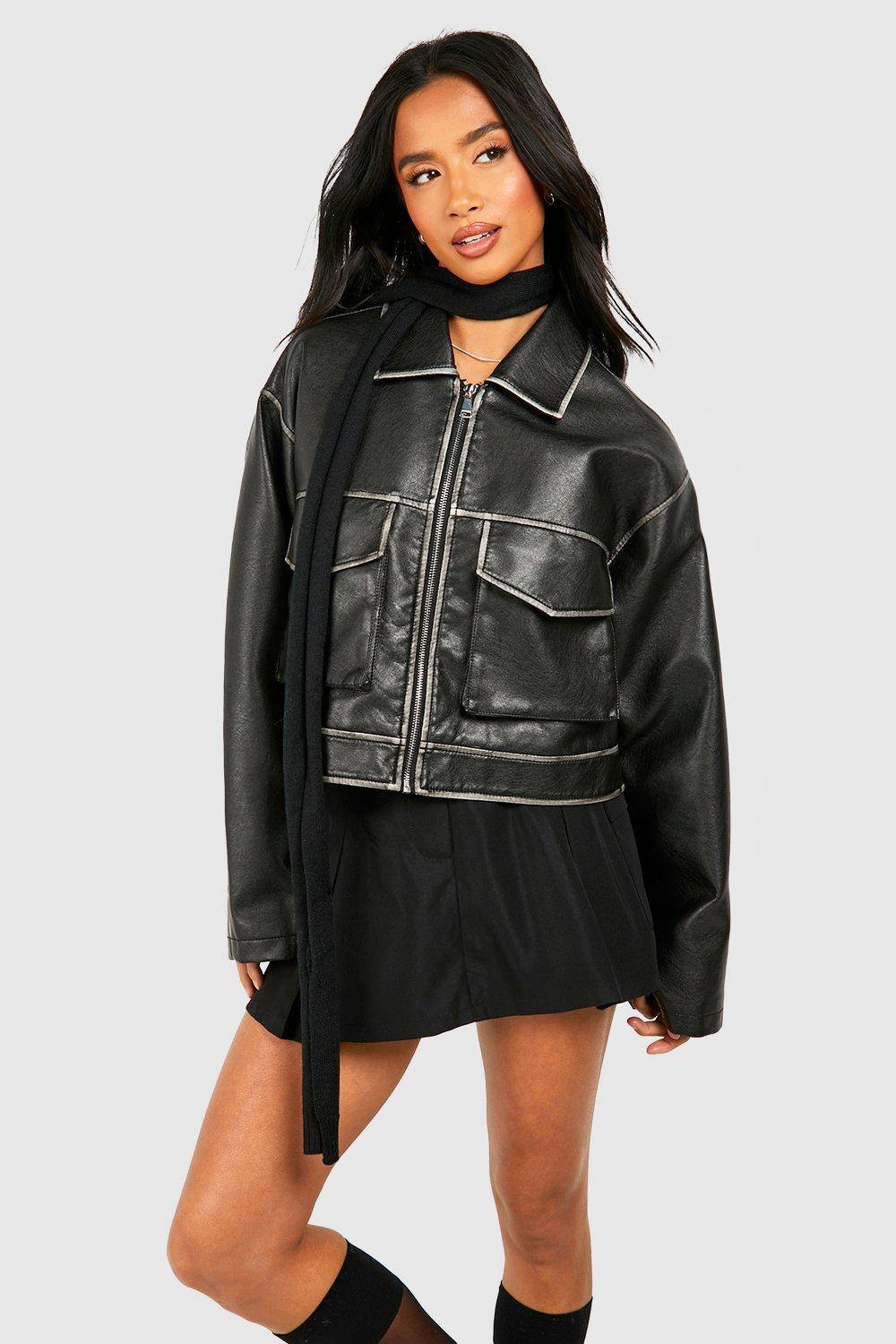 Womens Faux Leather Look Zip Detail Skort - Black - 16, Black