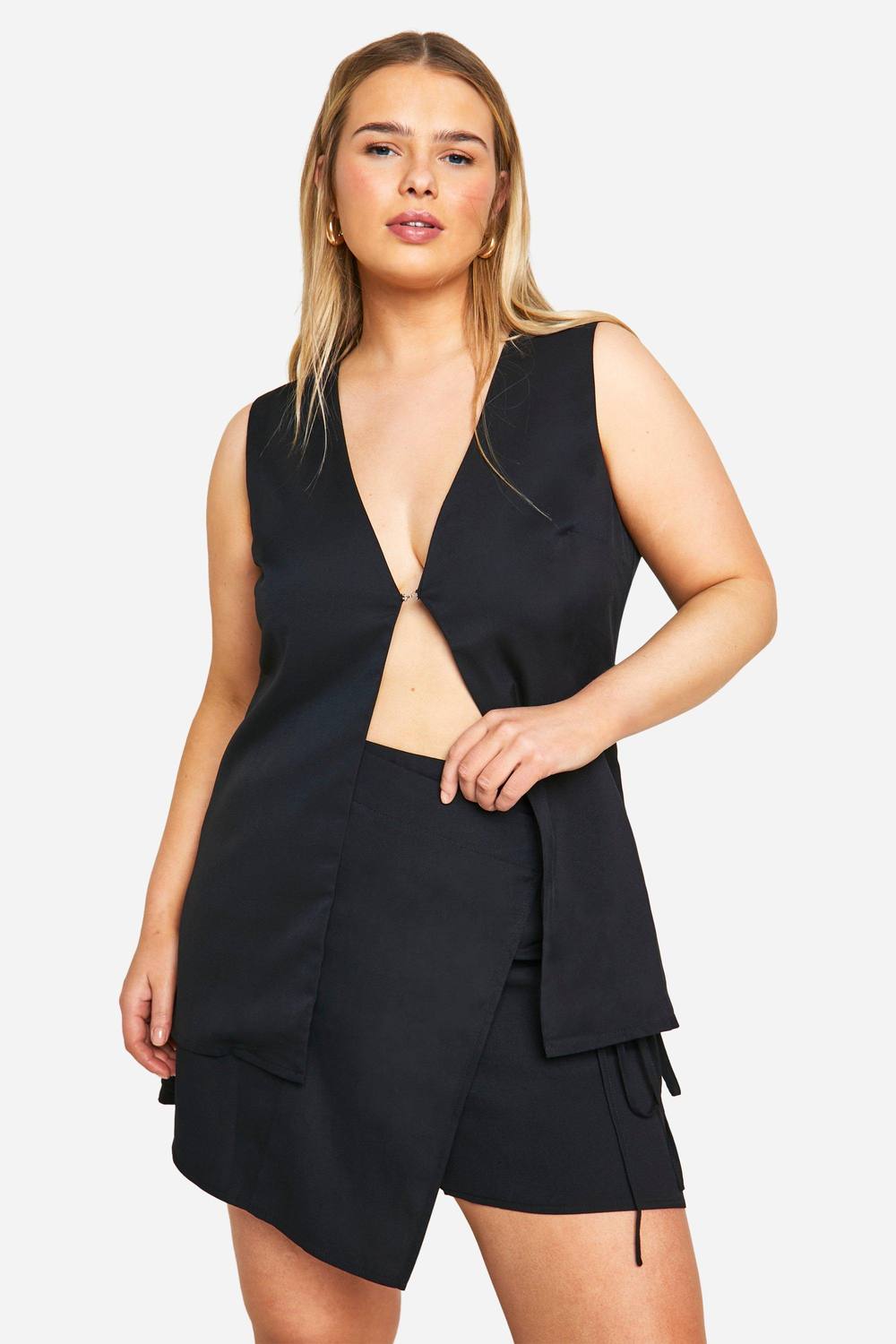 Womens Plus Hook And Eye Waistcoat And Skort Co-Ord - Black - 18, Black