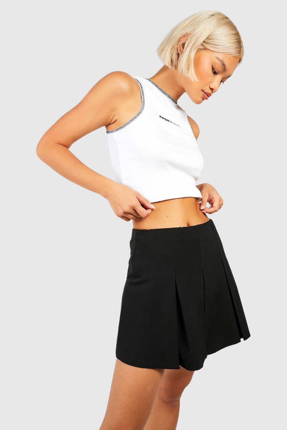 Womens Contrast Waistband Box Pleat Skort - Black - 10, Black