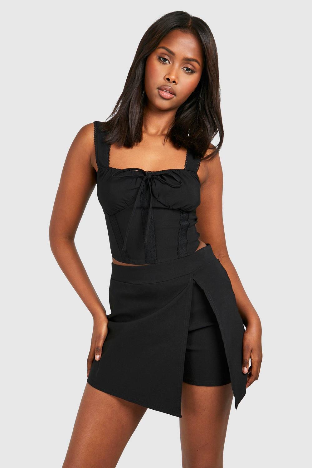 Womens Plus Knot Detail Wrap Skort - Black - 26, Black