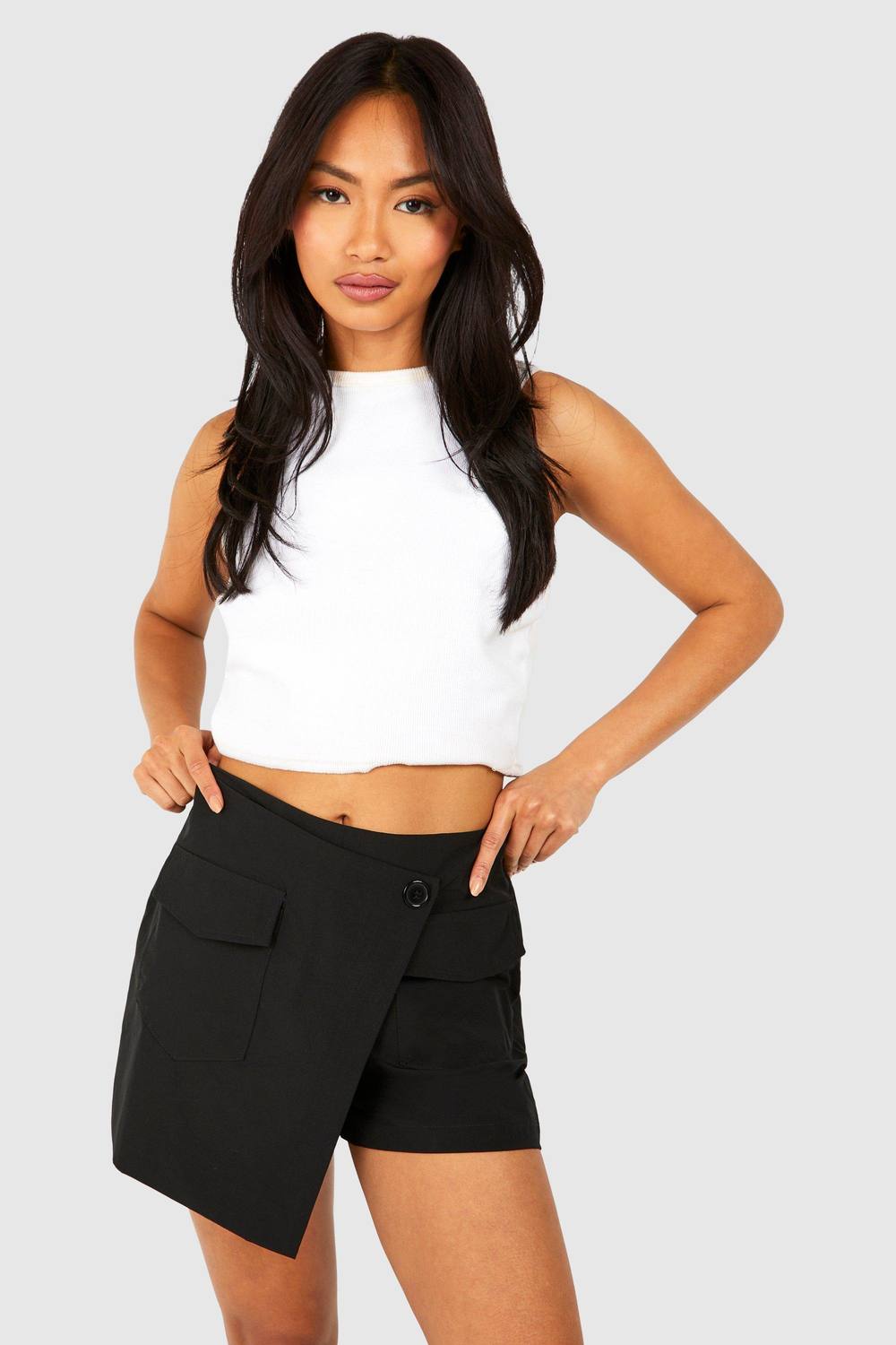 Womens Petite Utility Pocket Asymmetric Skort - Black - 8, Black