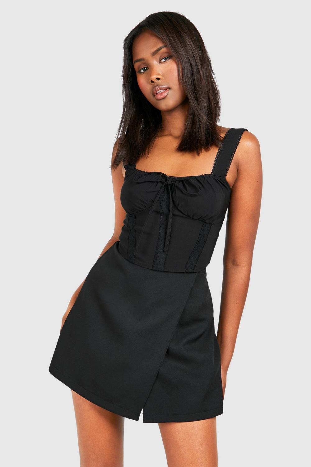 Womens Plus Knot Detail Wrap Skort - Black - 28, Black