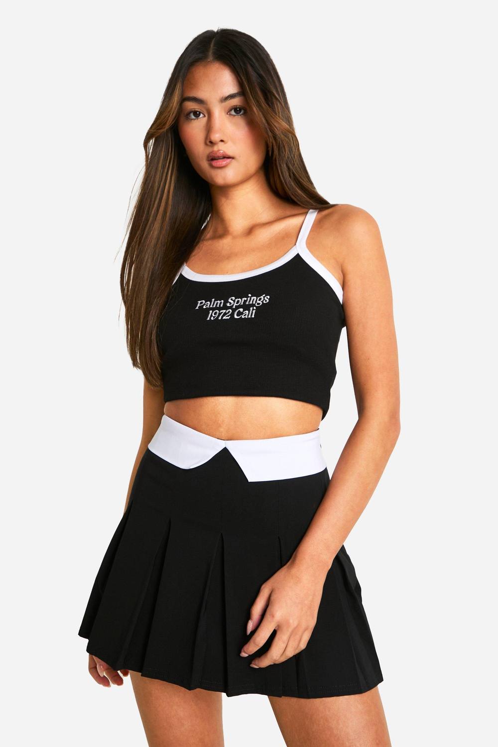 Womens Contrast Waistband Box Pleat Skort - Black - 8, Black