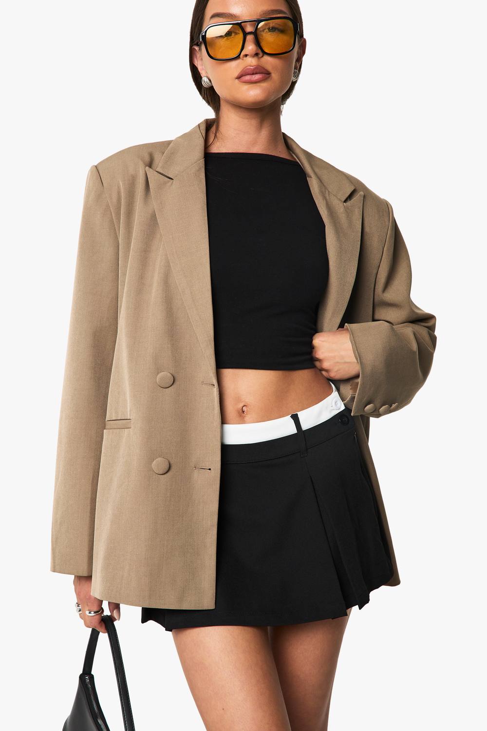 Womens Contrast Waistband Box Pleat Skort - Black - 6, Black