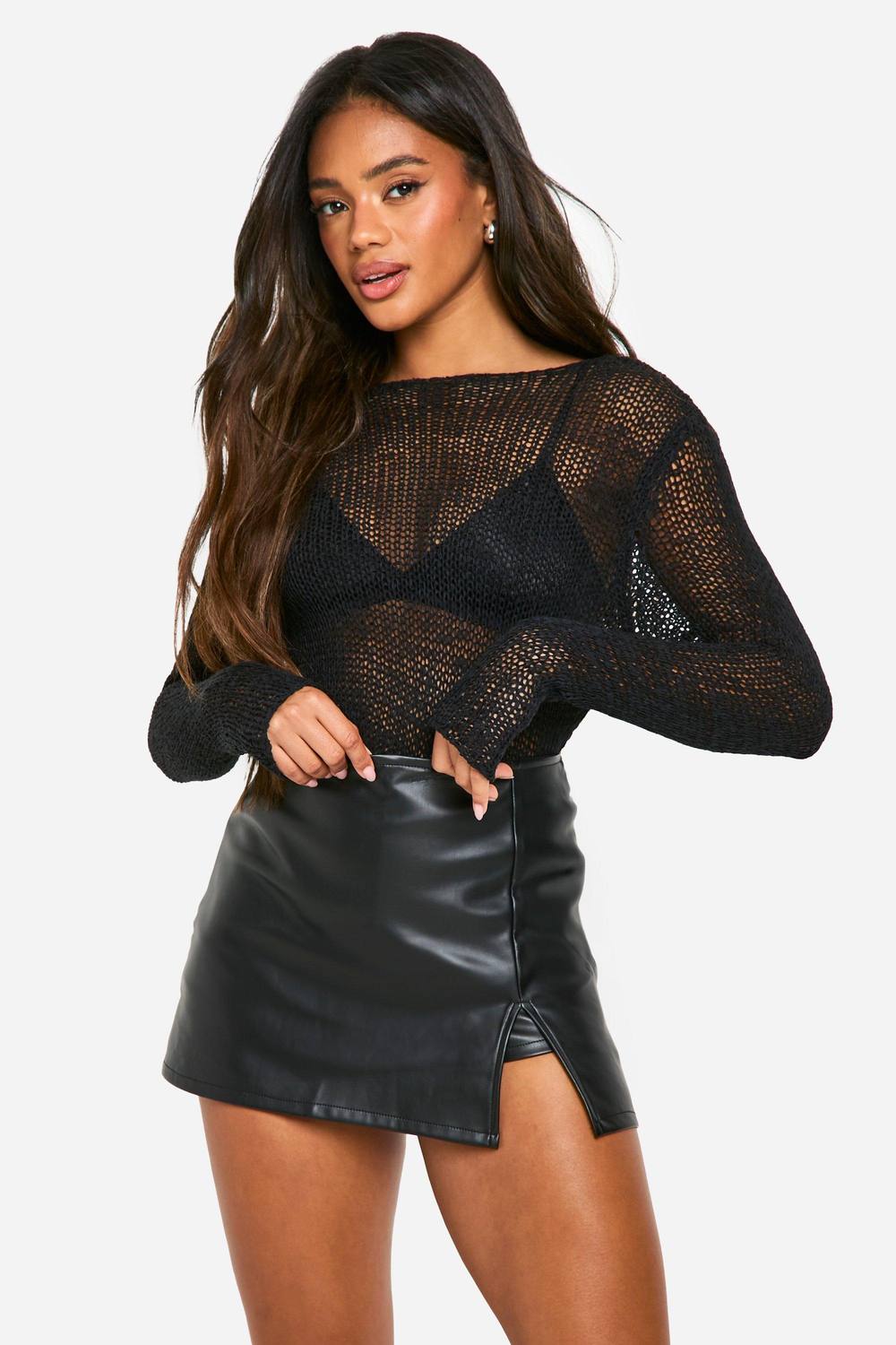 Womens Plus Pu Split Hem Skort - Black - 26, Black