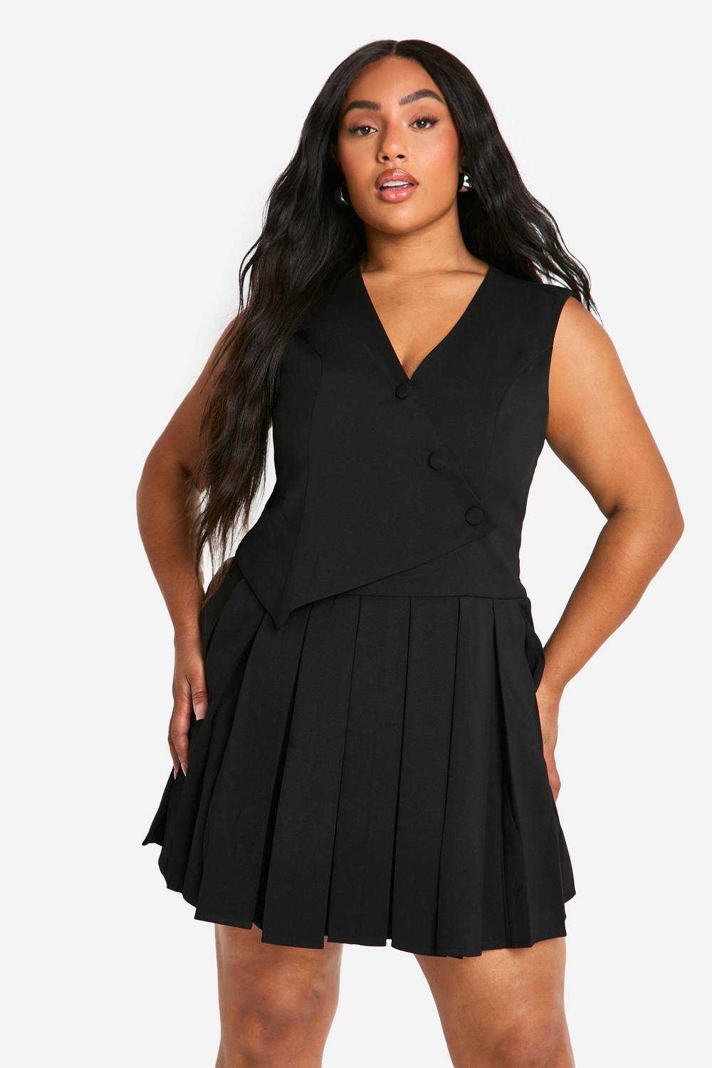 Womens Plus Tailored Pleated Skort Playsuit - Black - 28, Black