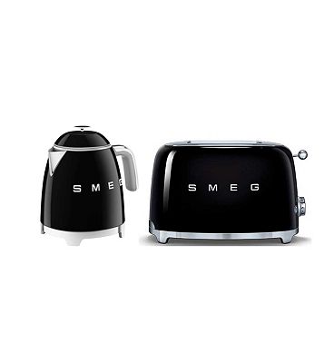 Smeg 50's Style Mini Kettle and 2 Slice Toaster in Black