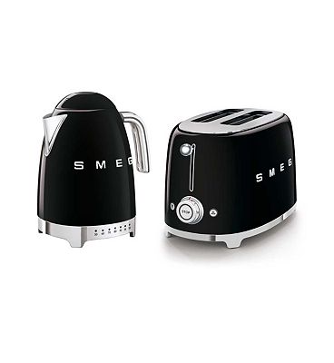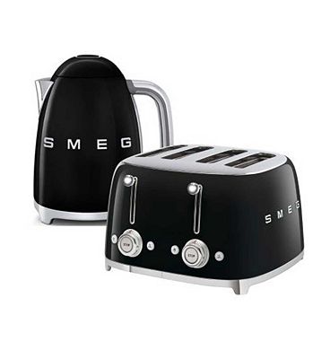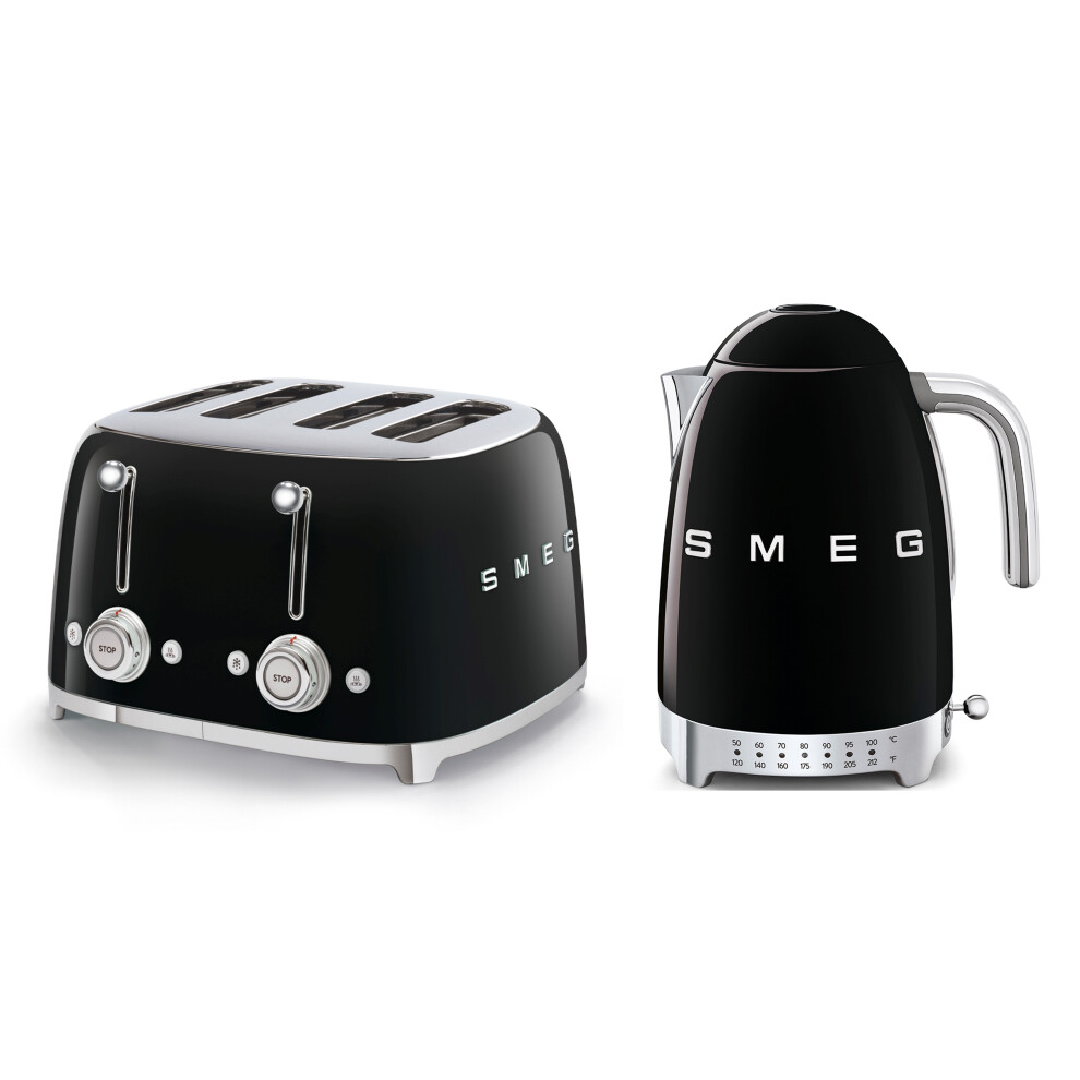 Smeg Kettle and 50s 4 by 4 Slice Toaster in Black