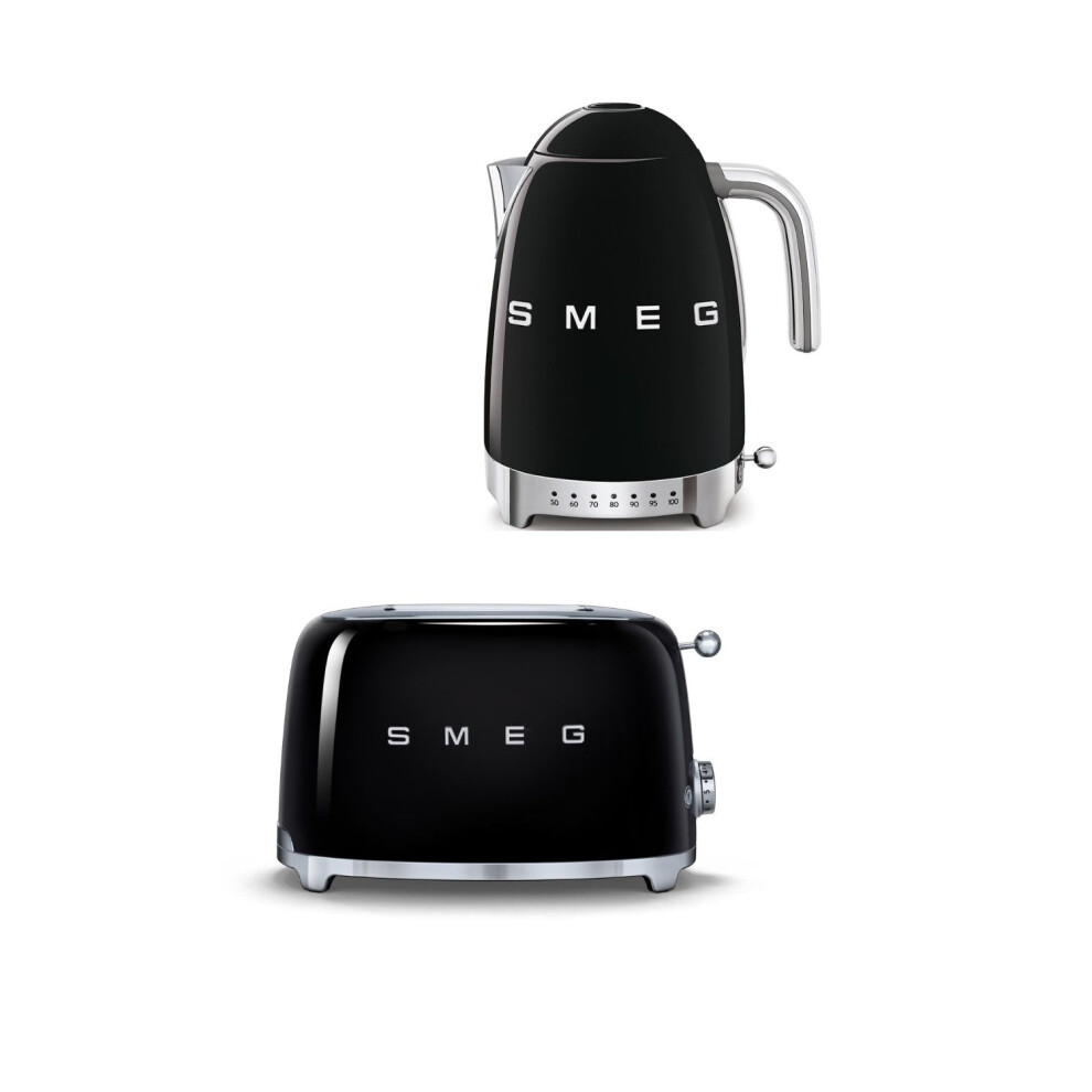 Smeg 1.7L Kettle & 2 Slice Toaster Twin Pack in Black