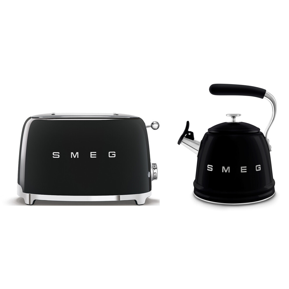 (Black) Smeg Retro Bundle | WKF01 Whistling Stovetop Kettle & TSF01 2-Slice Toaster Set