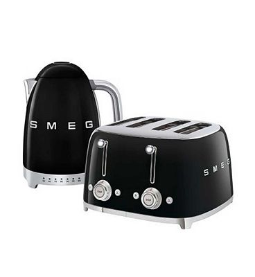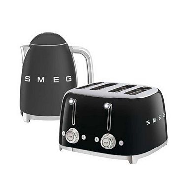 Smeg Kettle and 50s 4 by 4 slice Toaster in Black