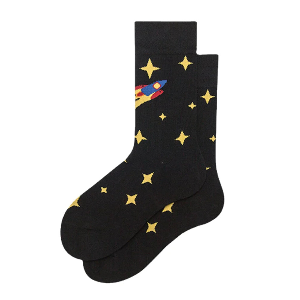 (Black) Socks Male Stockings Female Trend Starry Sky Tube Cotton Street Socks