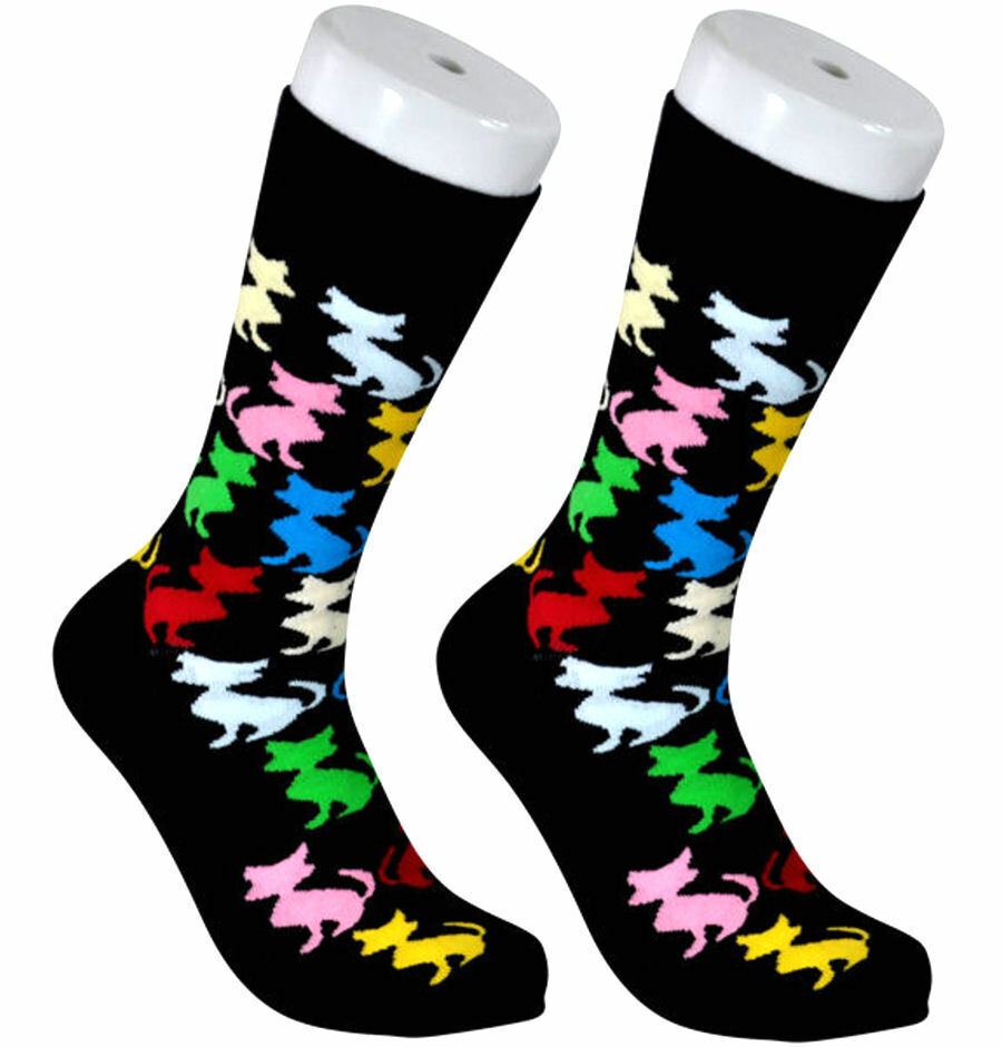 THE TIE STUDIO - Cats Colorful on Black (Men's/Female) Novelty Socks