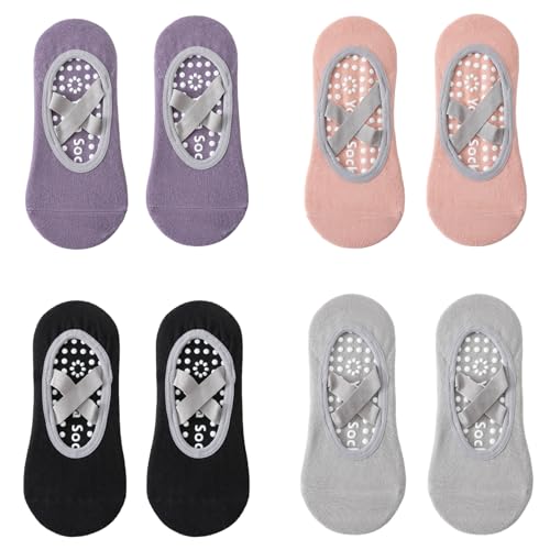 PGKDYC 4 Pairs Non Slip Yoga Socks, Women's Pink Purple Black Gray Size Women's (5-10), Adult Female Athletes Yoga Enthusiasts Pilates Practitioners