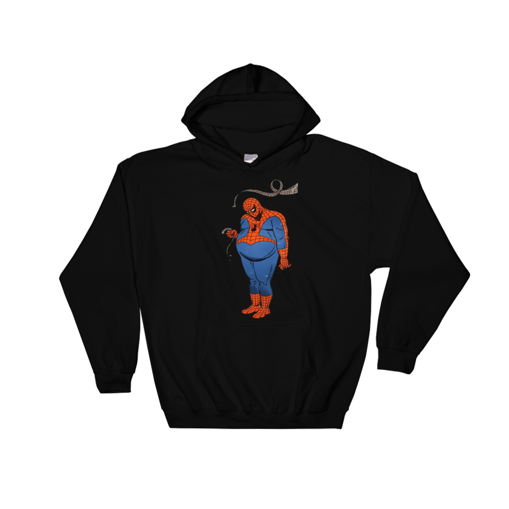 (XX-Large, Black) Obese Spider-Man Figure Black Men Women Unisex Hooded Sweatshirt Hoodie