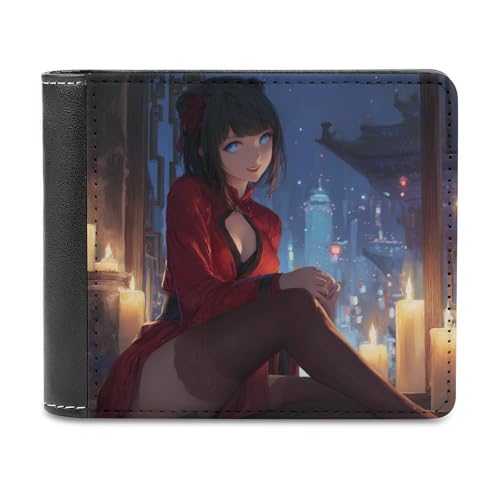 Anime Girls Wearing Black Stockings Classic Mens Wallets Women Slim Bifold Wallet Card Holder for Front Pocket