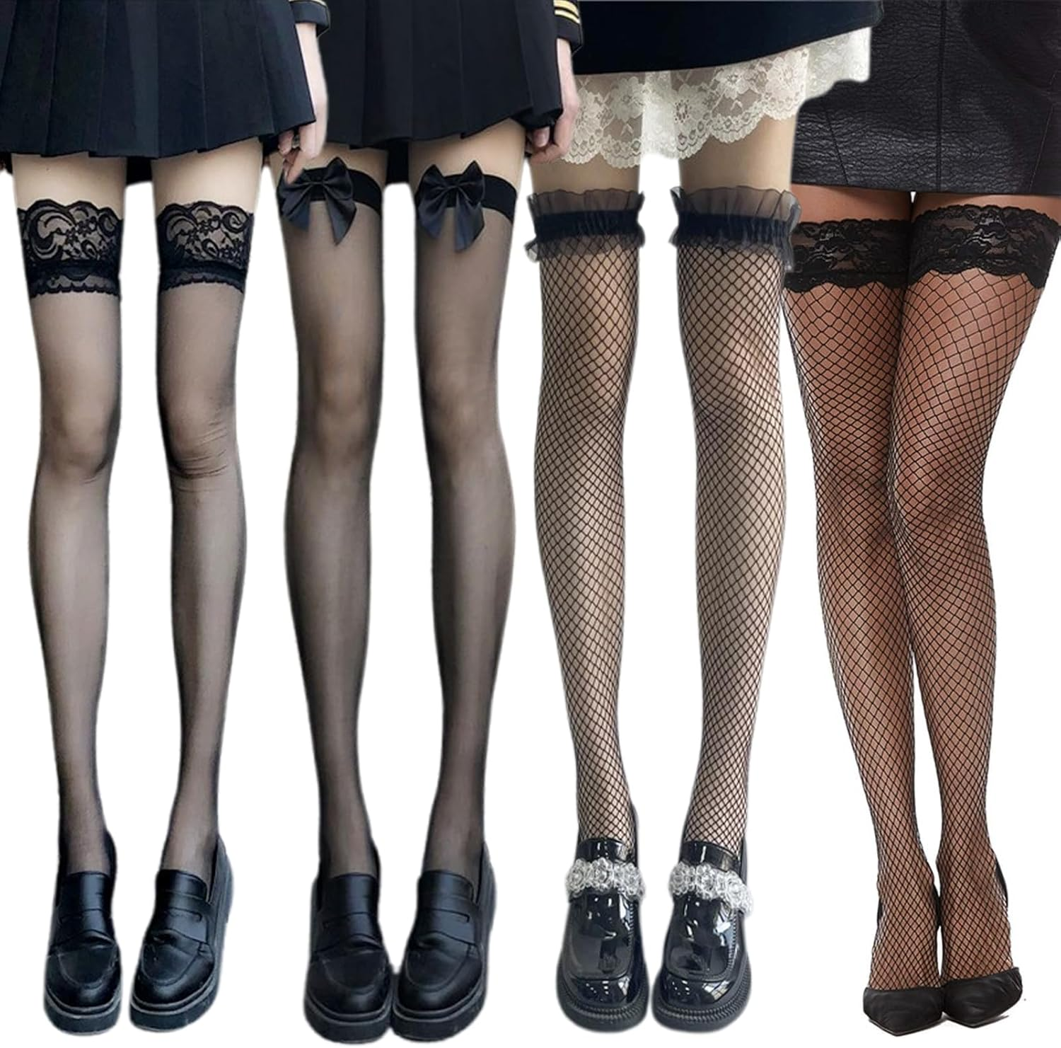 Pairs Women Thigh High Stockings, Fishnet Lace Top Stockings, Hold Up Stockings, Sexy Sheer Black Stockings, Fishnet Stockings for Women