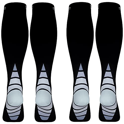 (2 Pairs)Compression Socks / Stockings for Men & Women, Black & Pink L/XL (For Women 6.5-13 /For Men 8-13.5) 2 same pair,